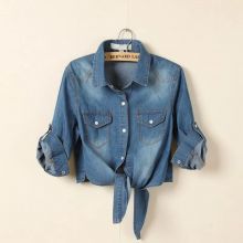 Use our battle tested marketing materials for Summer Chic Denim Crop Top - Women's Slim-Fit Short Sleeve Shirt