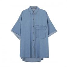 Use our battle tested marketing materials for Chic Summer Denim Shirt - Women's Short Sleeve Casual Vintage Top