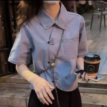 Use our battle tested marketing materials for Summer Chic Denim Crop Shirt - Women's Asymmetrical Thin Denim Top