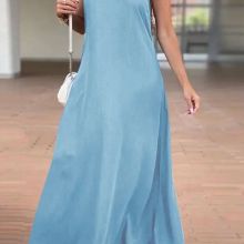 Use our battle tested marketing materials for Summer Halter Neck Maxi Dress - Sleeveless Denim Look Swing Sundress