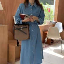 Use our battle tested marketing materials for Women's Vintage High-Waist Denim Lace-Up Dress - Elegant Mid-Calf Autumn Fashion