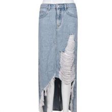 Use our battle tested marketing materials for Women's Stretch-Waist Denim Midi Skirt with Pockets and Raw Hem