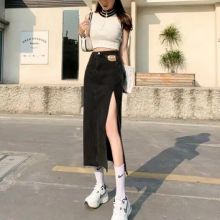 Use our battle tested marketing materials for Summer Vintage Denim Maxi Skirt with Side Split - Casual Long Jean Skirt