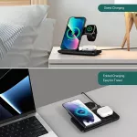 Introducing our state-of-the-art 3-in-1 wireless charging stand - an epitome of convenience combined with cutting-edge technology. Designed for the modern tech-savvy individual, this charger seamlessly powers your iPhone, iWatch, and AirPods simultaneously, eliminating the chaos of tangled cords and multiple adapters. Whether you’re at home, in the office, or on-the-go, this sleek, foldable charger ensures you stay connected without a hassle.