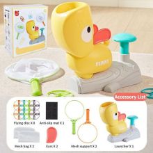 - Includes: 1 Launcher, 8 Flying Discs, 2 Mesh Bags, 2 Mesh Supports, 1 Anti-Slip Mat
