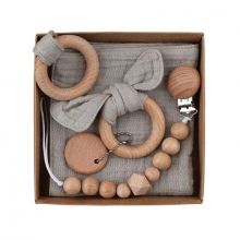 Use our battle tested marketing materials for Wooden & Cotton Baby Teething Set with Pacifier Clips & Saliva Bib