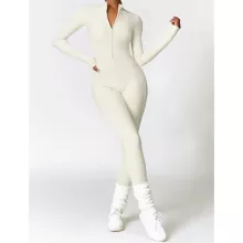 Introducing our latest addition to the world of activewear - the Cozy Fleece Women's Yoga Bodysuit. Designed for the modern woman who values both comfort and style, this all-in-one bodysuit is your perfect companion for the cooler months of autumn and winter. Its chic, solid pattern and sporty style make it an ideal choice for various activities, from yoga sessions to casual outings.