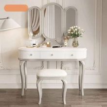 Use our battle tested marketing materials for Elegant Solid Oak Wood Dressing Table Set with Mirror and Stool - Rustic Modern Moroccan Style Vanity