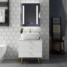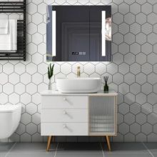 Use our battle tested marketing materials for Modern White Oak Bathroom Vanity Set with Smart Mirror and Marble Countertop