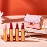 Dazzling Array of Shades: Introducing our unique lipstick bag, an essential for every makeup enthusiast. This set includes three matte lipsticks and a magical color-changing lip balm, offering a spectrum of shades perfect for any event. Each lipstick glides on effortlessly, delivering up to four hours of moisture-rich, vibrant color. Whether you're seeking a bold berry hue or a classic sultry red, these lipsticks provide super-saturated color in just one smooth application. Their high-quality formula ensures a non-sticky, fade-resistant finish, crafting the ideal statement lip for any occasion.