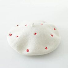 Don't miss out on the opportunity to own this exquisite wool beret. It's not just a hat, but a symbol of style, romance, and sophistication. Embrace your love for fashion and make a statement today. Add our Chic Wool Beret with Embroidered Red Hearts & Lips to your collection now!