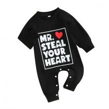 What sets this romper apart is its unique combination of playful design, comfort, and practicality. The heart print and "mr steal your heart" phrase add a touch of whimsy, making your little one the center of attention. The high-quality material blend provides both durability and comfort, ensuring your baby feels as good as they look.