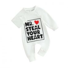 Introducing our enchanting Heart Print Baby Boy Romper, an ideal choice for your little one's Valentine's Day attire. This adorable jumpsuit, designed specifically for boys, captures the essence of love and charm with its delightful "Mr. Steal Your Heart" phrase and heart letter print. Made with a blend of 95% cotton and 5% polyester, this romper offers both comfort and style for your baby's special moments.