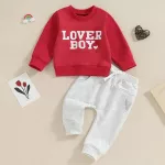 This outfit is not just for Valentine's Day; its versatile design makes it perfect for any casual occasion during Fall, Winter, and Spring. Whether it's a family gathering, a playdate, or just a day out, your little boy will look stylish and feel comfortable.