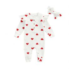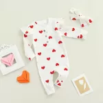 Introducing our enchanting Heart Print Baby Girl Romper Set, a must-have for your little princess. This adorable two-piece ensemble features a long-sleeve romper adorned with a delightful heart pattern, paired with a chic bow knot headdress. Crafted with love, it's perfect for making your baby girl the center of attention, especially on Valentine's Day. Embrace the joy and cuteness as your baby explores the world in this charming outfit.