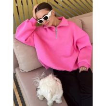 - Fabric: Cotton, Polyester blend - Style: Oversized, Turtleneck - Season: Autumn/Winter - Features: Zipper decoration, fleece lining, solid pattern - Sizes: S, M, L - Care: Cold water hand wash, routine dry cleaning recommended