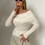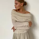 Introducing our exclusive knitted wool T-shirt, a perfect blend of style, comfort, and warmth for the cooler months. This slim-fit, long sleeve pullover is designed to elevate your everyday wardrobe with its elegant off-shoulder design and chic streetwear vibe. Ideal for autumn and winter, it's not just a piece of clothing; it's a fashion statement that speaks volumes about your impeccable style.Product Features