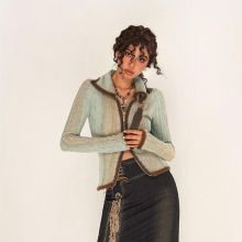 Use our battle tested marketing materials for Women's Slim Fit Knitted Cardigan with Two-Way Zipper and Flash Stripes