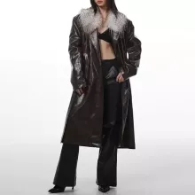Use our battle tested marketing materials for PU Leather Overcoat with Detachable Fur Collar & Belt