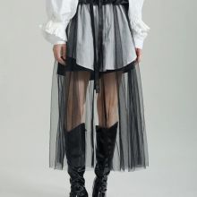 Use our battle tested marketing materials for High Waist Black PU Leather Ruffles Mesh Long Elegant Half-body Skirt
