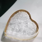 Introducing our exquisite heart-shaped glass plate, a symbol of elegance and versatility. Crafted with meticulous attention to detail, this plate is not just a dish but a statement piece that enhances any table setting or vanity. Its unique love heart shape, complemented by a luxurious gold rim, brings a touch of romance and sophistication to your dining and decor experience. Whether you're serving a delectable dessert, organizing your precious jewelry, or simply seeking an eye-catching incense tray, this plate promises to elevate the ambiance with its timeless charm.