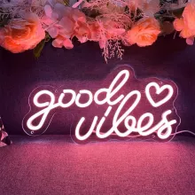 Embrace the beauty and vibrancy of our LED Neon "Good Vibes" Sign, and let it transform your space into a welcoming haven of good vibes and positivity. Whether it's setting the mood for a party, adding a unique touch to your decor, or simply lighting up your everyday, this neon sign promises to be a captivating centerpiece. Order yours today and illuminate your world with style!