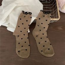 At the heart of our socks is the commitment to quality and style. Made from a cozy blend of cotton, polyester, and spandex, they offer the perfect balance of comfort and elasticity. The middle tube height is ideal for autumn and winter days, providing warmth without bulk. With a solid pattern adorned with adorable heart prints and ruffles, these socks are the epitome of cute and kawaii. Whether you're lounging at home or stepping out in style, they're designed to suit women EUR sizes 34-39, ensuring a comfortable fit for most.