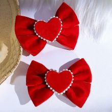 Unveil the Charm of Love with Red Velvet Pearl Bow Hair Clips