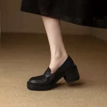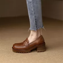 Use our battle tested marketing materials for Genuine Leather Slip-On Loafer Pumps: Women's Casual Round Toe with Chunky Platform Heels