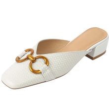 Use our battle tested marketing materials for Summer Leather Sandals for Women: Low Heel, Toe-Cover Mules with Chunky Heel & Metal Decor