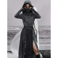 Use our battle tested marketing materials for Elegant High Neck Black Hooded Dress - Vintage Y2K Knitted Autumn Dress