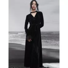 Use our battle tested marketing materials for Velvet Splice Mesh Long Dress - Vintage Elegance for Autumn & Winter