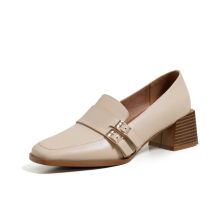 Use our battle tested marketing materials for Genuine Leather Square Toe Loafers with Thick Heel for Women