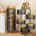 - 360° Rotating Storage Rack: Effortlessly access your stored items from any direction, thanks to the 360° swivel wheels and 270° rotating baskets.