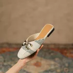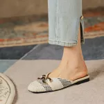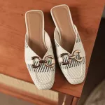 Introducing our latest summer sensation - the Chic Beige Woven Fabric Mules with Metal Accents. Designed for the modern woman who cherishes both style and comfort, these casual summer sandals blend sophistication with a relaxed vibe, making them perfect for any sunny day adventure. Whether you're strolling through the city streets or lounging at a weekend getaway, these sandals are your ideal companion.