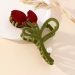 Made with high-quality materials, this durable and strong hair clip boasts a fine and comfortable texture that makes it a perfect companion for your hair. The unique flocked tulip design, combined with an innovative shark clip shape, showcases your unique taste while ensuring your hairstyle stays securely in place. The charming pearl accents add a sweet, girlish touch to the overall design, making it an irresistible choice for fashion-forward individuals.