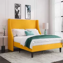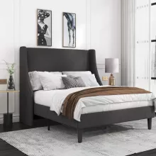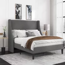 Whether upgrading your bedroom furniture or setting up a new home, our platform bed frame stands out with its blend of functionality and chic design. The dense foam padding not only adds comfort but enhances the feel of luxury. The wingback headboard provides excellent back support for reading or relaxing in bed, making it ideal for everyday use.