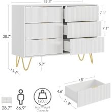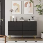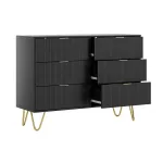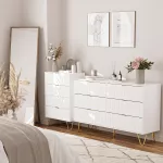 What sets our dresser apart is not just its appealing modern design but also its robust construction and thoughtful features. The eco-friendly materials used in its construction are not only durable but also environmentally conscious. The gold metal pulls add a touch of luxury while the metal legs ensure stability and elevate the dresser both literally and figuratively. Additionally, the easy assembly and practical design make it a stress-free addition to any home.