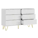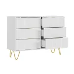 Discover the perfect blend of style and functionality with our Modern 6-Drawer Dresser. Designed to enhance any home decor, this elegant storage solution offers a contemporary aesthetic with its sleek metal legs and chic gold handles. Whether you're revamping your bedroom or adding a stylish touch to your living room, this dresser is an ideal choice for a refined yet practical living space.