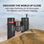What sets our binoculars apart is not just their technical superiority, but their design and versatility. The combination of lightweight materials, advanced optical technology, and weatherproof capabilities makes them a top choice for anyone looking to elevate their visual experiences. The nitrogen-filled construction not only prevents internal fogging but also makes them suitable for use in all weather conditions, ensuring that you never miss a moment, no matter the environment. Ready to transform how you see the world? Purchase your High-Definition 8x32 Binoculars today and start experiencing every detail of your surroundings in impeccable clarity. Don't just observe; immerse yourself with the best visual tools at your disposal.