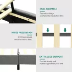 It's the attention to detail and user-focused design that sets our bed frame apart. From the noise-reducing sponge patch design that guarantees a quiet night's sleep to the effortless assembly process with clearly labeled parts, every aspect has been thoughtfully crafted to meet the highest standards of convenience and durability. The robust steel frame and high-quality fabric promise longevity and style, making it a worthwhile investment for your home.