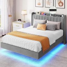 This bed frame isn't just furniture; it's a lifestyle upgrade. The floating design provides a sleek, off-the-ground look while ensuring stability with strategically hidden support legs that prevent the unpleasant shocks of toe stubbing. The headboard is not just for looks—it comes padded for comfort and includes built-in charging ports (1 USB and 1 Type-C), making it easy to keep your devices powered up without leaving your bed. Additionally, the bed features an LED RGB light strip around its base, offering adjustable ambience with over ten thousand color options, all controllable via a user-friendly app or a handy remote.