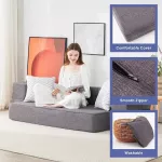 Our Floor Sofa Bed stands out with its minimalist modern design, blending beautifully with any room decor. The innovative convertible design ensures it fits perfectly in both small and large spaces, adapting to your needs. The inclusion of storage space under the seating area is a game changer, allowing you to store blankets, books, or seasonal items conveniently out of sight.