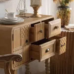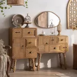 What sets this cabinet apart is its seamless combination of practicality and luxurious design. The intricate art pattern and fine pine wood finish not only enhance the visual appeal but also bring a sense of warmth and nature into your home. This cabinet is not just furniture; it's a statement piece that reflects your taste and style. Don't miss the opportunity to redefine your home with our Modern Moroccan Accent Cabinet. Order now to enjoy a blend of beauty and functionality delivered directly to your door. Elevate your home’s style today!