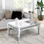 Crafted with the highest quality materials, this coffee table features premium silver mirror glass and a sturdy MDF frame. The table's surface is adorned with exquisite crystal diamonds that catch and reflect light, creating a captivating sparkle that elevates the atmosphere of any room. Whether placed in a living room, office, or reception area, it promises durability and an enduring appeal.