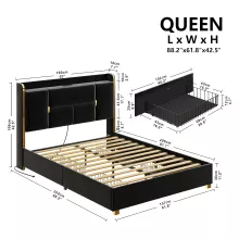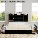 This bed frame is not just a piece of furniture but a comprehensive solution for a modern, stylish, and organized bedroom. Ideal for those looking to maximize space while incorporating sleek design, it provides substantial storage, supreme comfort, and a whisper-quiet sleep environment. Its durable construction and stylish design make it a worthwhile investment for any home.