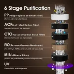 - Advanced 6-stage filtration process including a 4-in-1 PCC filter and a 0.0001μm RO membrane.