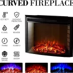 - 26" Curved Glass Electric Fireplace: Experience the charm of lifelike 3D logs and rustic red brick walls behind curved glass panels that offer an expanded viewing area. Enjoy the ambiance of a real fire with three flame color settings and six dimmer levels.