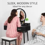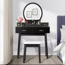 Introducing the ultimate blend of style and utility: our Modern Vanity Set is designed to cater to those who cherish a seamless, stylish start to their day. With its sleek black finish and minimalist modern design, this vanity set not only enhances your room's aesthetics but also serves multiple purposes, from makeup application to a compact workspace.