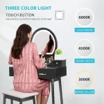 Imagine applying your makeup under the perfect lighting conditions every single day. Our vanity set features a lighted mirror with three adjustable settings—cold, natural, and warm light—to simulate various environments, ensuring your makeup looks impeccable in any setting. The touch-sensitive control allows you to adjust brightness effortlessly, protecting your eyes while providing precision in makeup application.